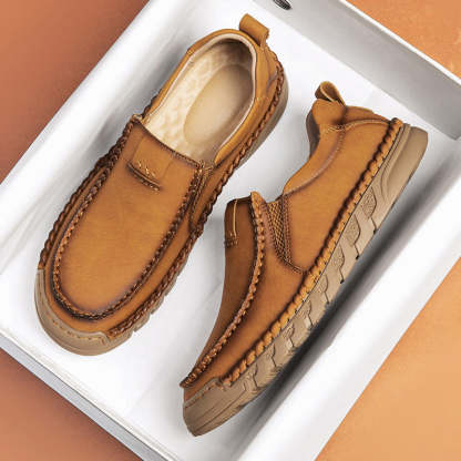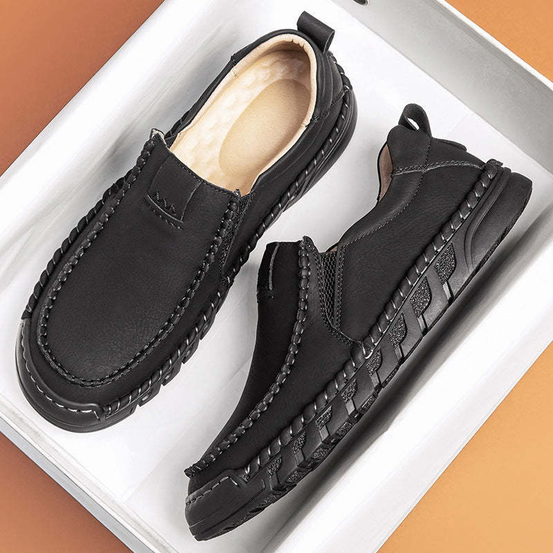 Crafted from tough genuine leather that resists wear, these casual loafers feature thick stitching and a comfort-cushioned insole to ensure you look rugged and ready for any adventure.