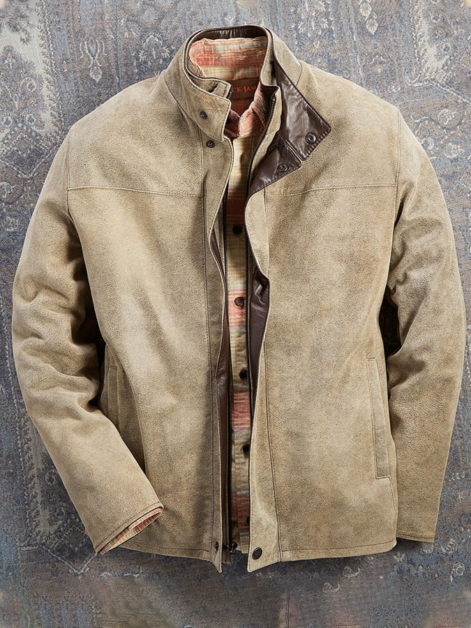 Woven Men's Vintage Distressed Western Pocket Leather Jacket Coat