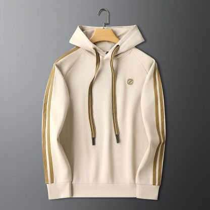 Designed with a buttery-soft cotton blend, this tracksuit features sleek gold stripes and an adjustable drawstring fit, making getting dressed easy and looking good even easier.